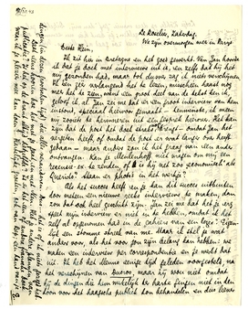 Laat eens hooren hoe het met je gaat, en met Nen. Heb je andere plannen van publicatie? Is het op de krant altijd hetzelfde? Is er het een of andere fransche boek waar ik je plezier mee kan doen? Hartelijke groeten, ook van Bep; een hand van