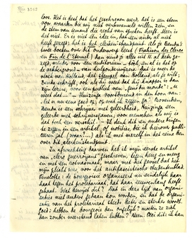 Dank voor brief en verzen; de laatste heel goed, geserreerd en minder mysterieus dan andere. Maar telkens als ik een paar van deze gedichten zie, krijg ik lust het geheel te overzien niet alleen, maar te ‘doorwroeten’. Het is misschien goed dat je wacht met publiceeren, want eigenlijk is het een in versformules gekristalliseerd dagboek, en het is misschien nog lang niet afgesloten; misschien is het iets dat jaren moet duren en dan blijken zal jou - gegeven je behoefte aan mysterie - zoo volledig te hebben uitgedrukt, als geen poëzie van je tot dusver het deed. Maar er is een samenhang-in-jou, die de argelooze lezer natuurlijk niet ziet, en die jij zelf wschl. eerst goed zult beseffen als alles vóór je ligt.