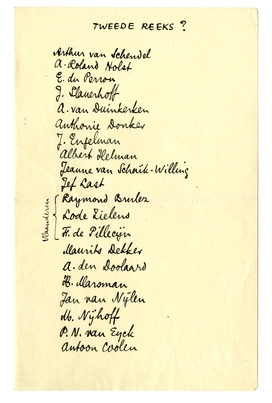 A. Roland Holst en Marsman zal ik, zoonoodig, ‘bewerken’. Op mijn lijstje zette ik 20 namen. Als 5 weigeren blijven er nog 15 over voor een eventueele ‘2e reeks’ bij Meulenhoff.3967 (Meulenhoff zal ook erg op Van Schendel gesteld zijn in de reeks.)