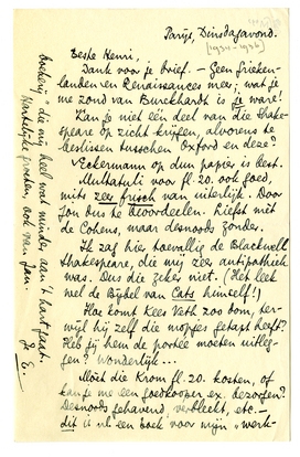 Dank voor je brief. - Geen Griekenlanden en Renaissances meer; wat je me zond van Burckhardt is je ware!