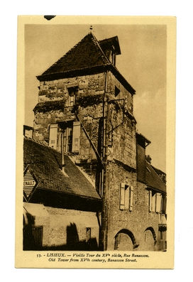3983Prentbriefkaart: foto van de oude toren in de Rue Banassan te Lisieux.