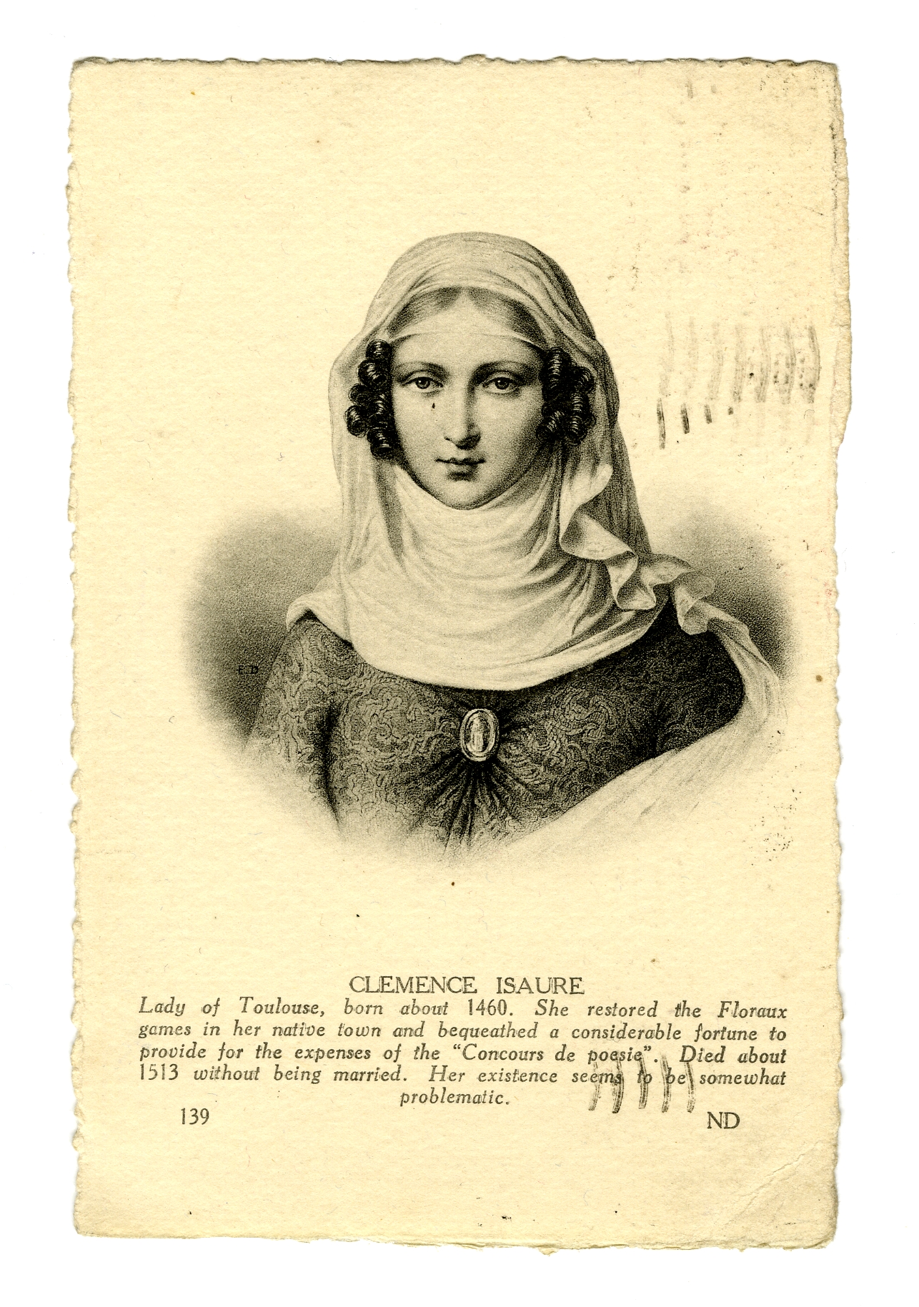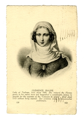 4040Prentbriefkaart: portret van Clémence Isaure (ca. 1460- ca. 1513).