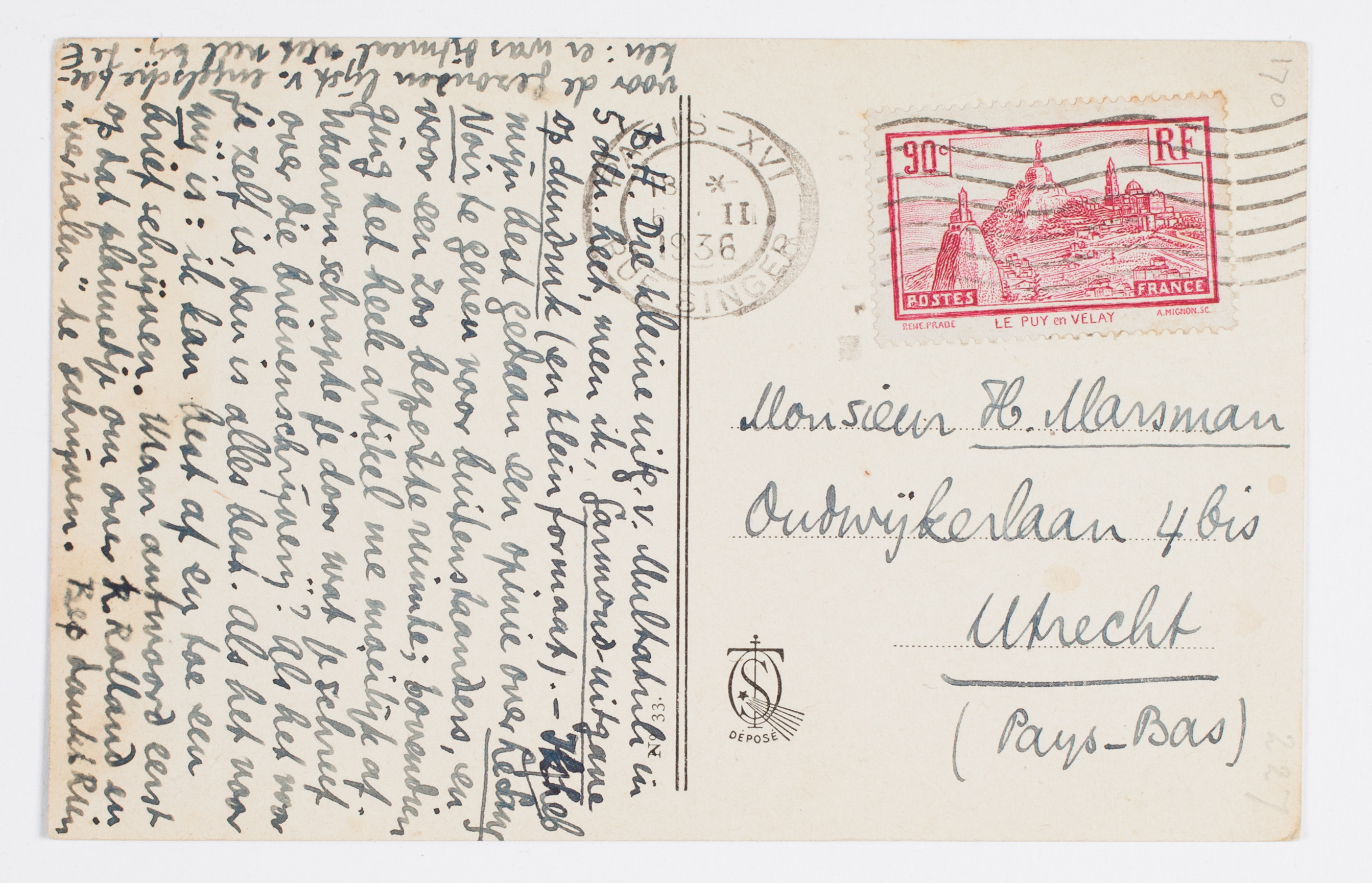 B.H. Die kleine uitg. v. Multatuli in 5 dln. heet, meen ik, Garmond-uitgave op dundruk (en klein formaat).4064 - Ik heb mijn best gedaan een opinie over Le Sang Noir te geven voor buitenstaanders, en voor een zoo beperkte ruimte; bovendien ging het heele artikel me moeilijk af. Waarom schrapte je door wat je schreef over die brievenschrijverij? Als het voor je zelf is, dan is alles best. Als het voor mij is: ik kan best af en toe een brief schrijven. Maar antwoord eerst op dat plannetje om over R. Rolland en ‘verhalen’ te schrijven. Bep dankt Rien voor de gezonden lijst v. engelsche boeken: er was ditmaal niet veel bij.