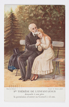 4063Prentbriefkaart: tekening van de Carmel de Lisieux, voorstellende een episode uit het leven van Ste Thérèse de l'Enfant-Jésus.