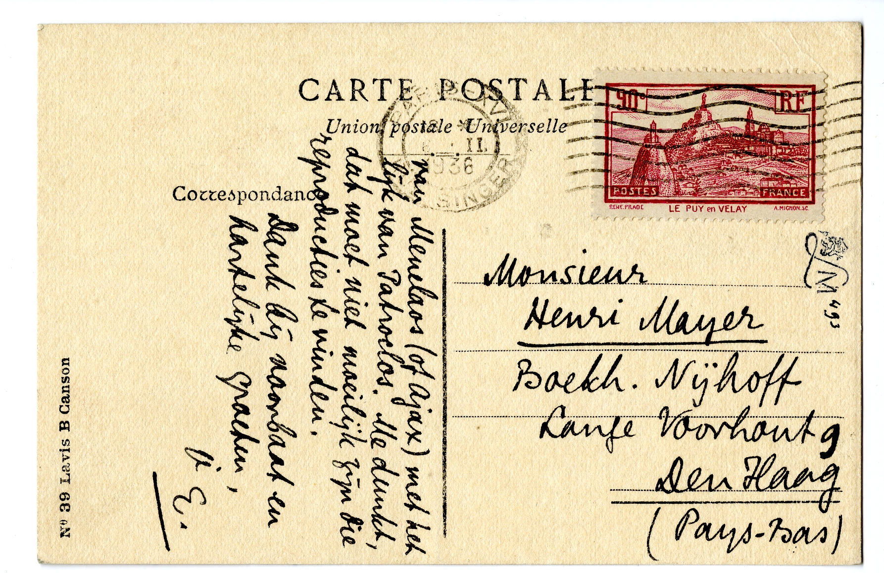 Dank voor Chénier en die onverwachte kalender-photo die je er zoo vriendelijk bij gedaan hebt! Maar je zou me een grooter plezier doen met het portret van Jan Engelman, dat, meen ik, ook in deze kalender voorkomt; dat zou ik nl. willen hebben om in een bundel van hem te plakken. En what about die grieksche atlas? Was het von Scheffer of Luckenbach die jij bedoelde? Luckenbach is voor mij niet erg bruikbaar. Is er geen duitsche uitgave op kunstdrukpapier van de bekendste grieksche beelden? en dan niet te duur, in die platte boekjes waar ze vroeger zoo sterk in waren? Kijk het eens voor me na. Wat ik vooral wil is een goede reproductie van een buste of masker van Homerus en van het overbekende beeld van Menelaos (of Ajax) met het lijk van Patroclos. Me dunkt, dat moet niet moeilijk zijn die reproducties te vinden.