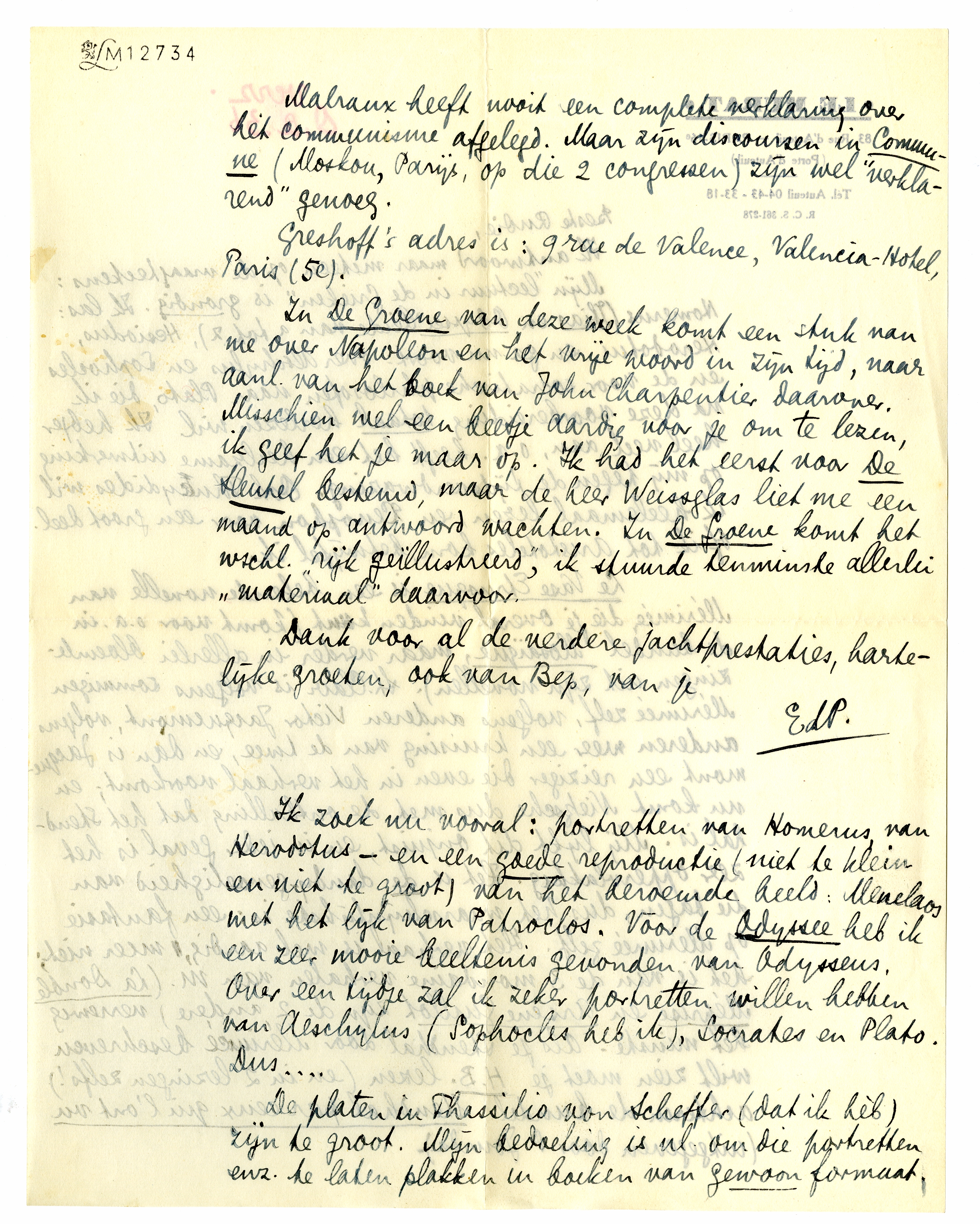 Greshoff's adres is: 9 rue de Valence, Valencia-Hotel, Paris (5e).
