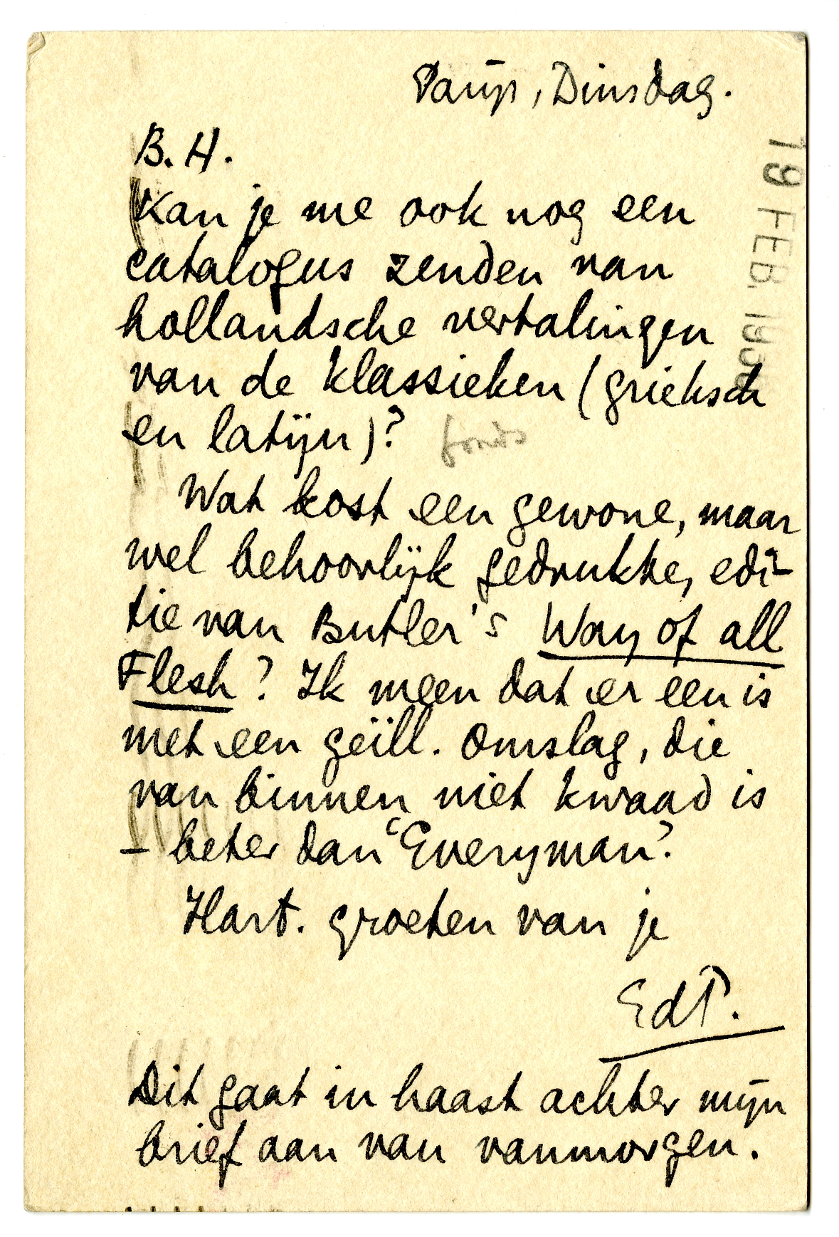 Kan je me ook nog een catalogus zenden van hollandsche vertalingen van de klassieken (grieksch en latijn)?