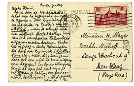 Dank voor de soendaneesche tekst van die tijgerjacht en voor de opgaven v. Jav. kronieken. Ik wacht verder op Butler's Way of All Flesh; maar je schrijft niets over Mallory's Morte d'Arthur, waarvan toch verscheidene behoorlijke uitgaven moeten bestaan. Verder had ik graag v. Lady Blessington dat boek over Byron, etc. (Recollections, etc., meen ik); kan je me daar ook een niet te dure uitgave van bezorgen? En Omar Khayyam, ben jij al aan het eind van je rol of van je latijn, om franco-nederl. te schrijven? - Hart. groeten van je