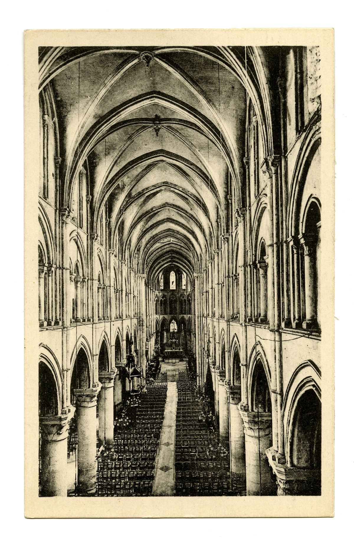 4116Prentbriefkaart: foto van het middenschip van de St. Petrus-kathedraal te Lisieux.