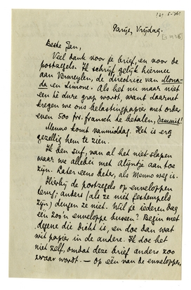 Veel dank voor je brief, en voor de postzegels. Ik schrijf gelijk hiermee aan Vermeylen, de directrice van Monada4195 en Simone.4196 Als het nu maar niet een tè dure grap wordt, want daarnet kregen we ons belastingpapier met order even 500 frs. fransch te betalen, dammit!