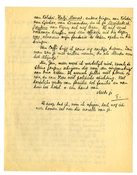 Nu, Jan, meer weet ik werkelijk niet, zooals de kleine jongens schrijven die voor een verjaarsbrief aan Oma zitten. Ik wensch jullie véél plezier op reis, en aan Kees véél politieke stichting. Veel hartelijks verder van familie tot familie en van huis tot hotel + een hand van