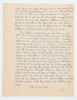 Ik heb gisteren niet geantwoord op die ‘polen’-kwestie; vooral omdat ik die altijd meer als bijwijze-van-spreken heb beschouwd. Jany en ik als jouw polen is heel aardig als beeld, en laat ook wel begrijpen wat er bedoeld wordt, maar als je ook maar even gaat verdiepen is zooiets natuurlijk altijd onjuist. Dat je nu alleen maar ‘vóór je ziet’, enz. wil dus alleen maar zeggen dat je de beelden verlaat en je intensief instelt op het probleem (of de toestand) zooals het is. Maar als mijn invloed, of hoe je 't noemen wilt, je althans genezen heeft van de ‘liefde voor Brigge’4310 (dit drukt wel precies uit wat ik bedoel) dan feliciteer ik ons beiden. Brigge is een groot man voor alle Binnendijken van de wereldliteratuur; geloof maar dat het ervan wemelt, en in alle ‘begaafdheden’. Je kunt Stendhal tegenover deze kul stellen, maar ook Tolstoï, die toch maar bitter weinig op Stendhal lijkt; het komt gewoon neer op de meest gezonde afkeer van iedere schrijver met zin-voor-waarheid - met verantwoordelijkheidsgevoel - voor een bepaald soort ‘literatuur’. Als er één ding is waarom ik Bep bv. hoog stel, dan is het om de intrinsieke onmogelijkheid voor haar om zich als juffrouw Abelone4311 te zien, - of het nu een Rilke is die haar zoo zien zou, of een Couperus (ik denk nu aan die ‘fijne vrouw’ uit Metamorfoze4312). - Met dat al ziet ze toch tegen Indië op!