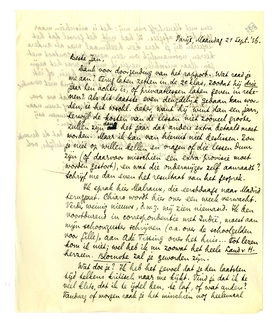 Dank voor doorzending van het rapport. Wat raad je me aan? Terug laten zetten in de 2e klas, zoodat hij drie jaar ten achter is, of privaatlessen laten geven in rekenen? Als dit laatste even deugdelijk gedaan kan worden, is het wschl. beter, want hij wint dan een jaar, terwijl de kosten van de lessen niet zóóveel grooter zullen zijn dan het jaar dat anders extra betaald moet worden. Maar ik kan van hieruit niet beslissen. Zou je niet op willen bellen en vragen of die lessen duur zijn (of daarvoor misschien een extra-provisie moet worden gestort), en wat die onderwijzer zelf aanraadt? Schrijf me dan even het resultaat van het gesprek.