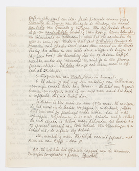 | 3. | Veranderingen van Ducroo zal ik je mondeling zeggen, als we elkaar in Brussel terugzien. Vmdl. zal dit begin October plaats hebben. Als jullie dan nog bij de Greshoffs zijn, is dat voor ons toch best, want wij kregen juist een uitnoodiging van mijn ‘tante’ de Sturler om bij haar te logeeren, wat we nu maar zullen aannemen. - Bericht uit Indië heb ik niet meer, maar is ook niet noodig. |