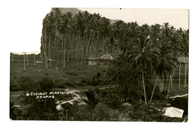 Beste Jan en Atie, Deze briefk. schrijf ik nog hier, maar wij gaan niet meer aan wal, dus morgen uit Port Swettenham. Iedere dag meer die om is, is ons een opluchting. Maar Pinang was allerliefst: één ding alleen dat toch anders is dan Indië, er zijn veel meer en beter onderhouden, klapperboomen. Zoo ‘geadministreerd’ als op deze kaart is het ‘bij ons’ nooit. Verder alles best, behalve dat de lullificaties mij dagelijks moeilijker vallen.4392 Schrijf gauw.