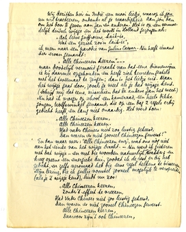 En dan maar weer: ‘Alle Chineezen enz.’, wat ons nòg niet aan het einde van het wijsje bracht. - Nu werd ik gisteren met dat wijsje - en met die woorden natuurlijk - wakker; en kreeg opeens een energieke bui, zoodat ik de rest er bij heb gedicht, en zelfs versmaad heb die eene regel telkens te bisseeren. Mijn lezing, die ik jullie voorstel zooveel mogelijk te verspreiden (als je 't wijsje kent), luidt nu zoo: