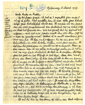 Ik vraag me af hoe lang we hier zullen blijven. Maar daarover hoor je natuurlijk nader. Freddy, waar woont je broer de controleur precies? Komt hij nooit op Java? Zeg hem in dat geval dat hij me opzoekt en bij me logeeren kan. Hartelijke groeten van ons beiden voor jullie beiden - huwelijkscher kan het inderdaad niet! - en een poot van jullie