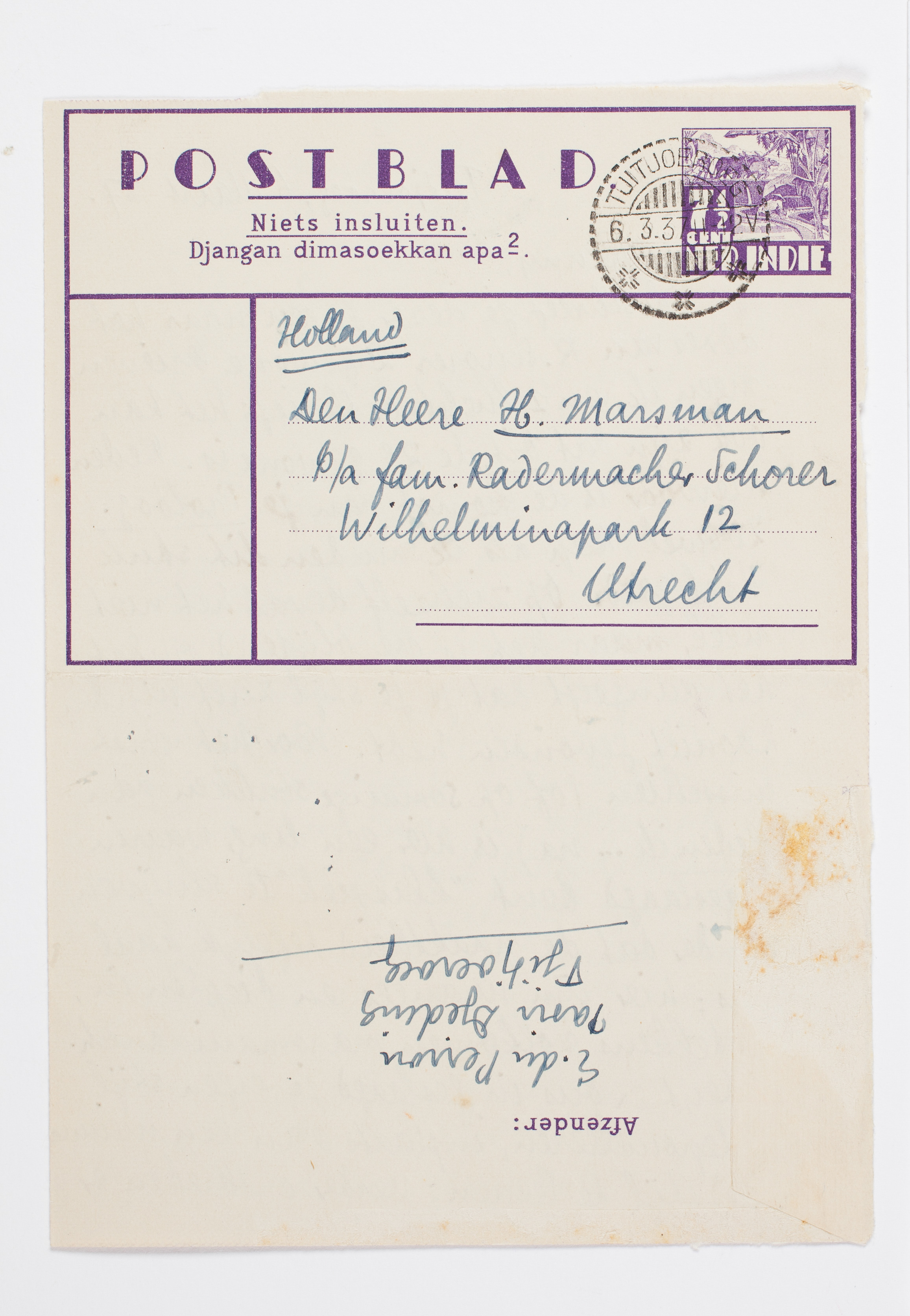 Dat is dat. Stuur geen complete Groene's meer; dit zeg ik nog eens. Ik ben absoluut klaar nu met mijn Multatuli, maar wee en verbitterd tegen Querido. Ik zou van hem af willen zijn, omdat hij zoo verdomd weinig royaal doet, tegen mij tenminste. Maar soedah, ik wacht op antwoord. Hartelijke groeten 2 × 2, je