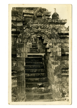 4624Prentbriefkaart: foto van een tempelpoortje van de Boroboedoer.