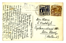 We zijn op weg naar Bali. De tempels zijn zeer de moeite waard. Hier bij van de gewijde Boroboedoer, over 't algemeen in statische soepelheid en langs lijnen van geleidelijkheid alle schakeeringen van zachtheid beoefenend, ik bedoel: ontplooiend, een Meneer-Visserachtige uiting. Maar beneden de kop strooien alweer ‘hemelingen’ bloemguirlandes neer op den bezoeker: ‘prenez la rame pour quel ques sous’. Later nog meer moois. Hartelijke groeten v.