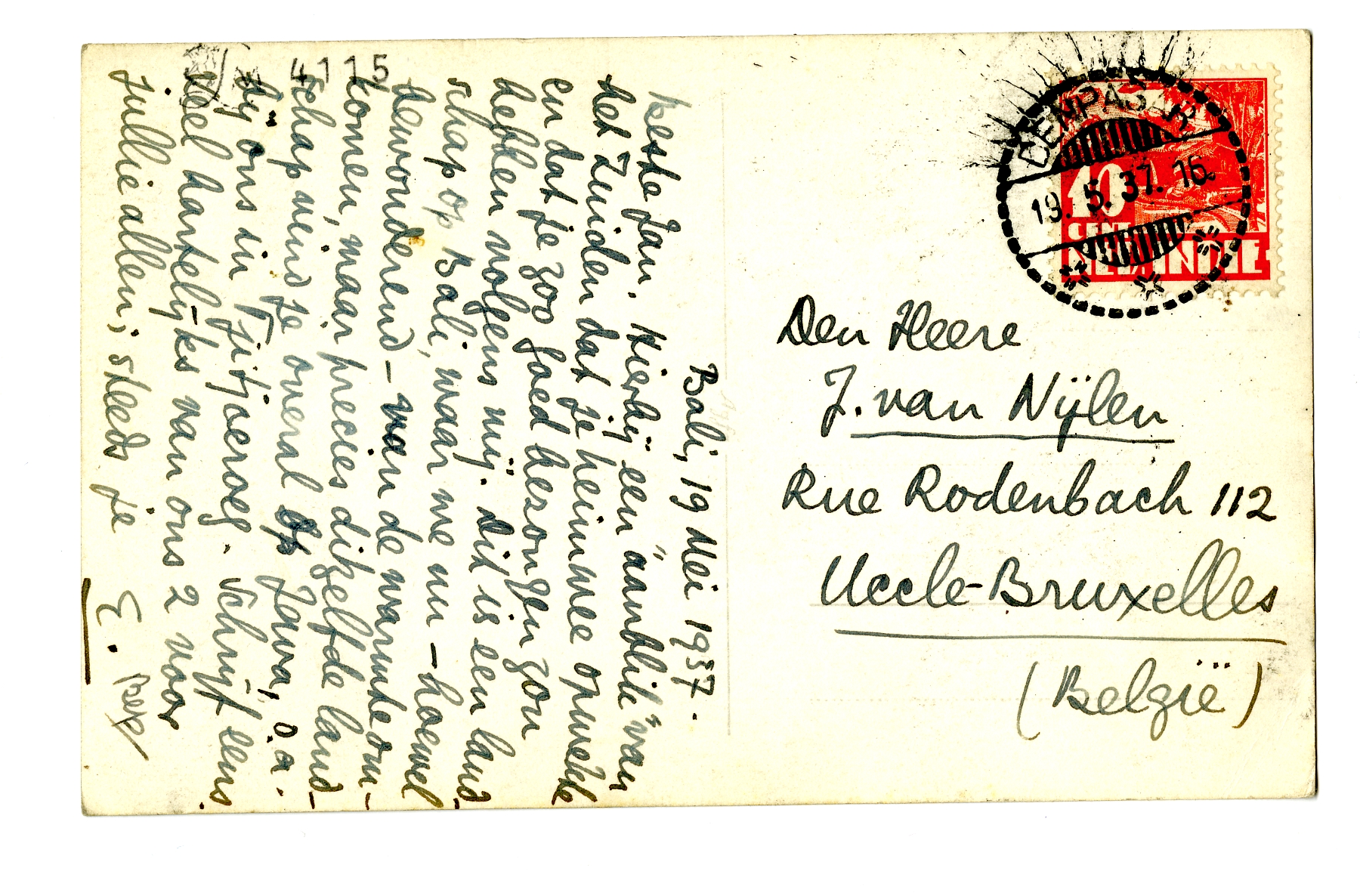 Beste Jan, Hierbij een ‘aanblik’ van het Zuiden4648 dat je heimwee opwekte en dat je zoo goed bezongen zou hebben volgens mij. Dit is een landschap op Bali, waar we nu - hoewel bewonderend - van de warmte omkomen, maar precies ditzelfde landschap vind je overal op Java, o.a. bij ons in Tjitjoeroeg. Schrijf eens.