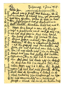 Maar deze kaart is aan één ding gewijd v. praktische aard: wil je mij s.v.p., nu het stuk pas in Aug. erin komt, een proef zenden (of revisie v/h door Menno gecorr. artikel) van Mult. Naleven? Ik ben er absoluut op gesteld - na een gesprek met Samkalden ook, gister, die wèl het stuk van Saks in G.N. las (ik nog steeds niet!) en er stomverbaasd over was dat jullie dat hadden opgenomen - om op dat art. te antwoorden. Dat gaat het beste nog in datzelfde stuk over Pée (nr. aanl.v. Pée); dus reken daar nog 2 à 3 blzn. bij. In godsnaam! ik heb het niet gewild. De these ‘Mult. laat de bevolking v. Lebak in de steek omdat hij zijn strafoverpl. nr Ngawi niet aanvaardde’ is - vereerend gezegd - idioot. Sk. en ik, die beiden Indië kennen - Sk. is absoluut géén Multatuliaan* - hebben er gister uitvoerig over gesproken. Mult. heeft het EENIGE gedaan wat hij doen kon, óók voor den Javaan. En ijdel zijn we in alles wat we doen, zie LaRochefoucauld. De heer Saks is Jan Lubbes die met een duimstok een vulkaan verkleinen wil. Ik vind 't gewoon rot dat G.N. 's mans gekritiseer opnam. Waarom?4667