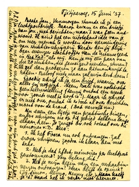 | 3. | Heb je mijn begin van een verhaal-in-verzen ontvangen? Waar blijft de opinie? (Jij, Simon, Menno, Henny, etc). Maar kréég je 't? Haast heb ik verder niet hiermee. |