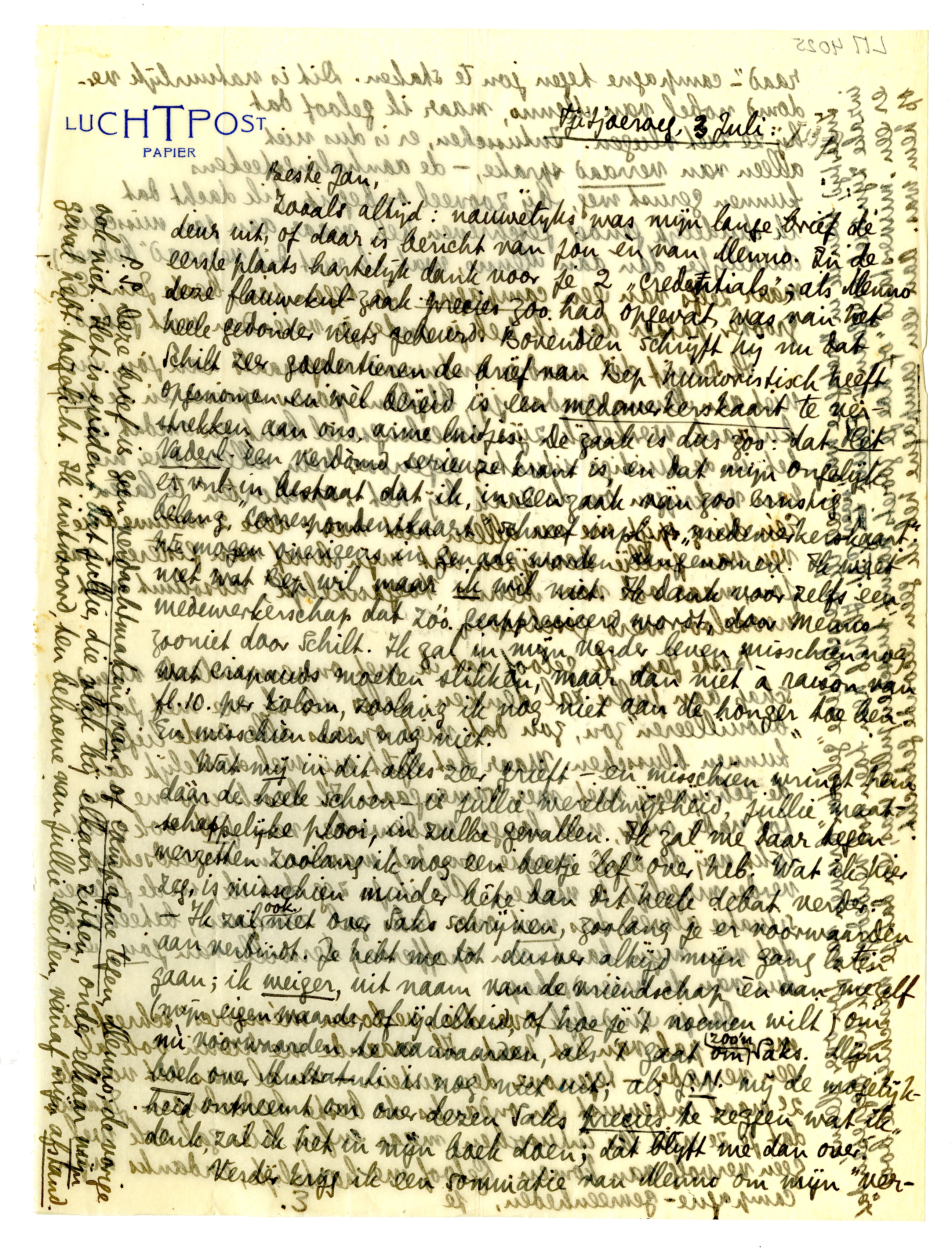 Ik schrijf dit noodige antwoord nogmaals aan jou, en niet aan Menno, omdat jij, blijkens jouw opinie in de Vad.-kulzaak, werkelijk zijn tweelingsziel bent, en omdat ik het, in de huidige situatie, tegenover hèm alleen over me kan verkrijgen om de zaak bij het ‘opschorten’ te laten. Eén ding spijt me nu alleen niet meer: deze 2 nieuwe brieven van jullie bewijzen dat mijn brief van gisteren, aan jou, maar ook voor Menno ‘toegankelijk’, absoluut absoluut noodeloos werd geschreven.