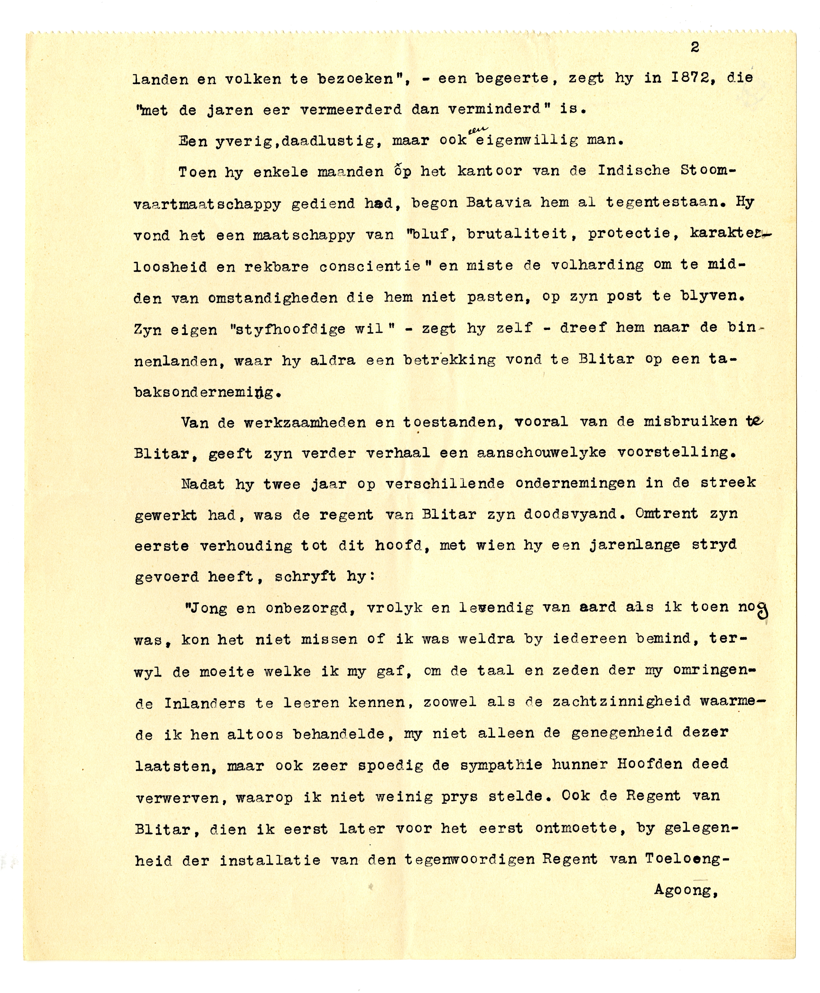 Beste Jan, Dit volslagen onbenullige stukje - waarom werd het op deze manier afgeblazen? - van den grooten Verwey over Dubekart, werd voor mij door Fred. Batten overgetypt uit De Beweging. Ik heb er niets aan, omdat ik de Feiten zelf las, die een 10 × betere bespreking verdienen. Als ik tijd had - d.w.z. voor dit soort ‘vacantiewerk’ - schreef ik een boek - vie romancée of zooiets - over Dubekart. Maar à quoi bon? Zelfs menschen als jij zouden dit leven immers alleen maar lezen als ‘literaire liefhebberij’, en au fond zou ze 't immers geen bal kunnen schelen wat of die mijnheer Dubekart heeft uitgehaald of niet. Een onmaatschappelijke dwaas, een beetje koppiger dan een ander. De Mij heeft hem dan ook opgevreten, ‘elle a eu son poil’. Lees dit maar bij de thee, als proza van Verwey over een wel curieus geval, smijt het daarna weg. Of vestig de aandacht v. Saks erop; misschien kleineert hij Dubekart dan ook nog wel ‘historisch’, voor hij zelf 80 wordt, en wordt dat het [...]4793 bij het volgend jubileum.
