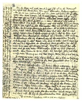 P.S. D.D. schreef me onlangs dat hij erover dacht je binnenkort een paar eerste stukken mémoires te zenden, wat hij voorloopig durft uitgeven. Je zult zien dat er uitstekende dingen bij zijn (over de Boeren-oorlog o.a.). Hij heeft het nogal aardig gebolwerkt dank zij een ongelooflijke energie, zijn gevangenisstraf is nu omgezet in f 300. boete. Maar die wil hij ook niet betalen, als het eenigszins kan. Er zijn lansen voor hem gebroken in den Volksraad. Ik heb werkelijke bewondering voor zijn pluck: na het leven dat hij leed (37 gevangenissen!), 58 jaar oud, en met iedereen (van ‘gezag’) tegen hem (alle ‘weldenkenden’ nog 10 × meer!)
