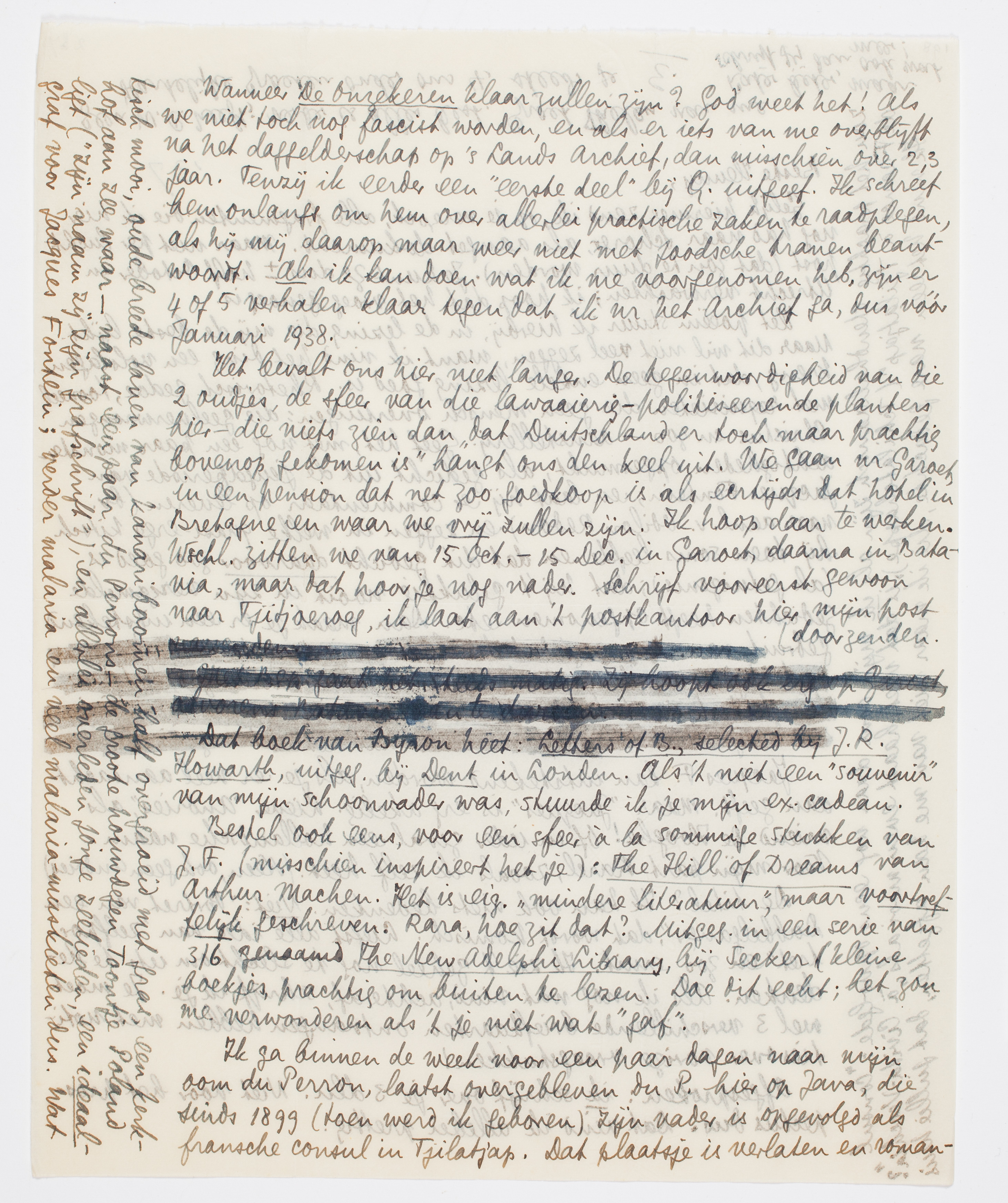 Het bevalt ons hier niet langer. De tegenwoordigheid van die 2 oudjes, de sfeer van die lawaaierig-politiseerende planters hier-die niets zien dan ‘dat Duitschland er toch maar prachtig bovenop gekomen is’ hangt ons den keel uit. We gaan nr. Garoet,4911 in een pension dat net zoo goedkoop is als eertijds dat hotel in Bretagne4912 en waar we vrij zullen zijn. Ik hoop daar te werken. Wschl. zitten we van 15 Oct-15 Dec. in Garoet, daarna in Batavia, maar dat hoor je nog nader. Schrijf vooreerst gewoon naar Tjitjoeroeg, ik laat aan 't postkantoor hier mijn post doorzenden.