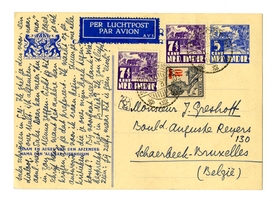 | a/ | geen antwoord over Tervueren (dat hoèft nu ook niet meer, hoewel 't prettig voor ons zou zijn te weten wàt zoo'n logies daar ons ± kosten zou, als 't er tòch nog van komt); |