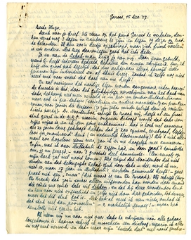 Dank voor je brief. We staan op het punt Garoet te verlaten, denken eerst nog drie dagen in Bandoeng te zijn en tegen 19 dezer op Bat. te belanden. Ik ben zoo'n beetje opgeknapt, maar zich frisch voelen is iets anders. Met Bep daarentegen gaat het iets beter. Je ex. van de Lebak-man krijg je van mij. Maar even geduld, want Q. heeft iedereen bedeeld, behalve den armen schrijverd. Dwz. ik krijg een groot pak tegelijk, dat dus achteraan sleept, terwijl ieder pers-man zijn individueel ex. al thuis kreeg. Zoodat ik zelfs nog niet weet wat voor snoet dat boek van me heeft!