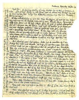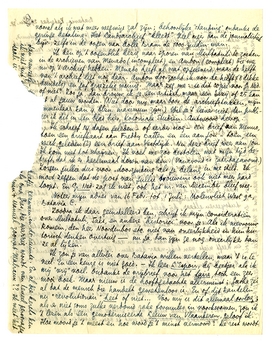 Ik ben op 't oogenblik bezig naar sporen van Multatuli te zoeken in de archieven van Menado (incompleet) en Ambon (compleet) die we nu op 't Archief hebben. Menado heeft al wat opgeleverd, maar de helft van 't archief ligt nog dààr. Ambon doorzocht ik voor de helft (8 dikke bundels) en gaf griezelig weinig. Maar zeg me: is dit copie voor Gr. Ned. of niet? Zoo ja, dan brouw ik je een artikel, maar een blzij of 25 kan 't al gauw worden. (Niet door mij maar door de archiefstukken, mijn commentaar kan 4 blzn. maximum zijn.) Wil je 't liever niet, dan publiceer ik dit in een blad hier, Koloniale Studiën.5209 Antwoord hierop.