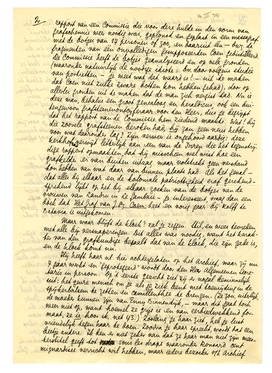 Daar: 6 blzn., gestolen van den Ned. Ind. Staat. Als ik binnenkort weer een brief krijg waarin ik niet uitgekafferd word, zal ik daar gewetensvol op antwoorden. Word ik er nog wel in uitgekafferd, dan leg ik hem opzij tot de serie compleet is. Werkelijk, ik ben tenslotte even tam tegenover de schim van Robbers als tegenover het gesupposeerde Coen-gebeente.