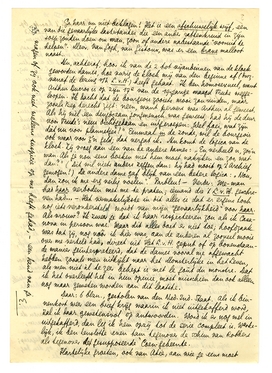 Sindsdien zijn de 2 andere dames vriendelijk tegen mij geworden. Zij drinken géén koffie meer met de kloek. En let wel, zij waren de eenigen die, oogenschijnlijk althans, met de kloek bevriend waren, want het ‘mindere personeel’ verfoeit haar van den eersten man tot den laatste. Daarom die opmerking van mij die jij niet begreep; mijn hart was daar vol van en vloeide er dus van over, op den dag dat het complete archief tegen de kloek samenvloeide.