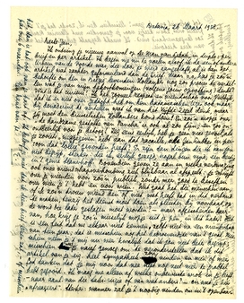 Wat ik niet prettig vind, is een methode die je soms hebt om mij toe te spreken zooals een onderwijzer het een kind doet. Elsschot heeft afstand gedaan van zijn honorarium, maar E poi werd mij in Sept. 1936 al betaald. Dáár was dus geen andere betalerij aan verbonden en ± 40 blzn. minder was 't misschien ook. Het eenige wat hier nog onvoordeelig was, voor H. en W., was 't 1½ jaar aanhouden van het zetsel, lijkt mij. Bovendien, waarom dit excuus? Je vind Pensioen beter, denk ik; ik misschien ook;je hebt je daar warm voor gemaakt en er dus een weg voor gevonden, terwijl je voor E poi merkbaar bent afgekoeld. Ik neem je dàt niet kwalijk; ik vind 't alleen maar vervelend dat je telkens weer praat van een bevoorrechte positie voor mij. Elsschot en Vestdijk hebben een bevoorrechte positie in G.N., verder niemand.