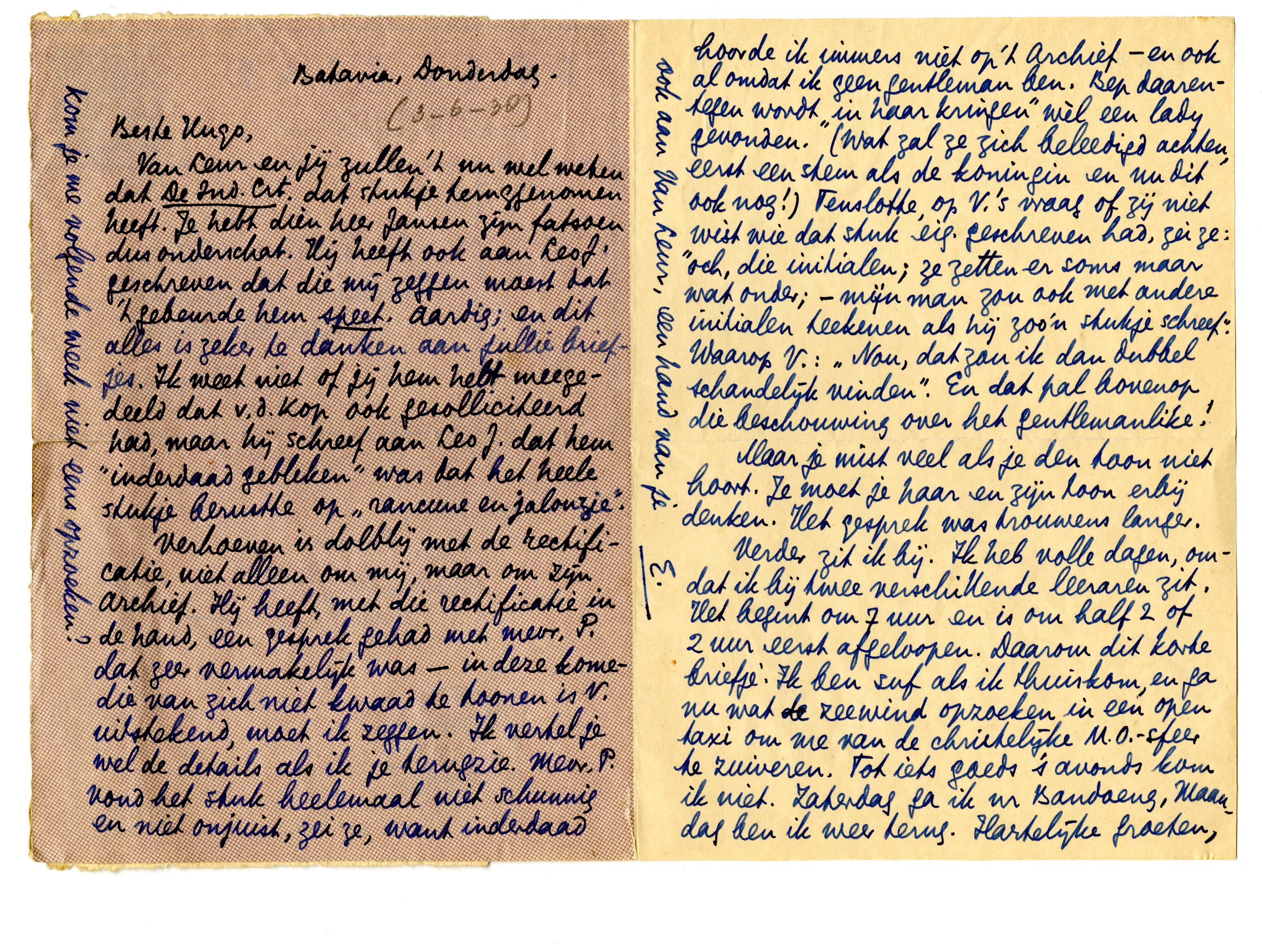 Van Leur en jij zullen 't nu wel weten dat De Ind. Crt. dat stukje teruggenomen heeft. Je hebt dien heer Jansen5409 zijn fatsoen dus onderschat. Hij heeft ook aan Leo J. geschreven dat die mij zeggen moest dat 't gebeurde hem speet. Aardig; en dit alles is zeker te danken aan jullie briefjes. Ik weet niet of jij hem hebt meegedeeld dat v.d. Kop ook gesolliciteerd had, maar hij schreef aan Leo J. dat hem ‘inderdaad gebleken’ was dat het heele stukje berustte op ‘rancune en jalouzie’.