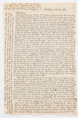 Ik ben benieuwd of ik binnenkort werk vind - er is sprake van een uitgeverij, een vrije school en een bibliotheek, alle 3 in Bandoeng: een rotplaats wat de kleinsteedsche sfeer betreft, maar best als klimaat. Bep heeft van haar kant een aanbieding in Buitenzorg (H.B.S.), maar gescheiden leven willen we geen van beî. Vandaar allerlei onzekerheid. Enfin, tegen half Juli hoor je 't wel. - Het beste voor je werk, met Rien en met de gezondheid. Steeds hartelijk je