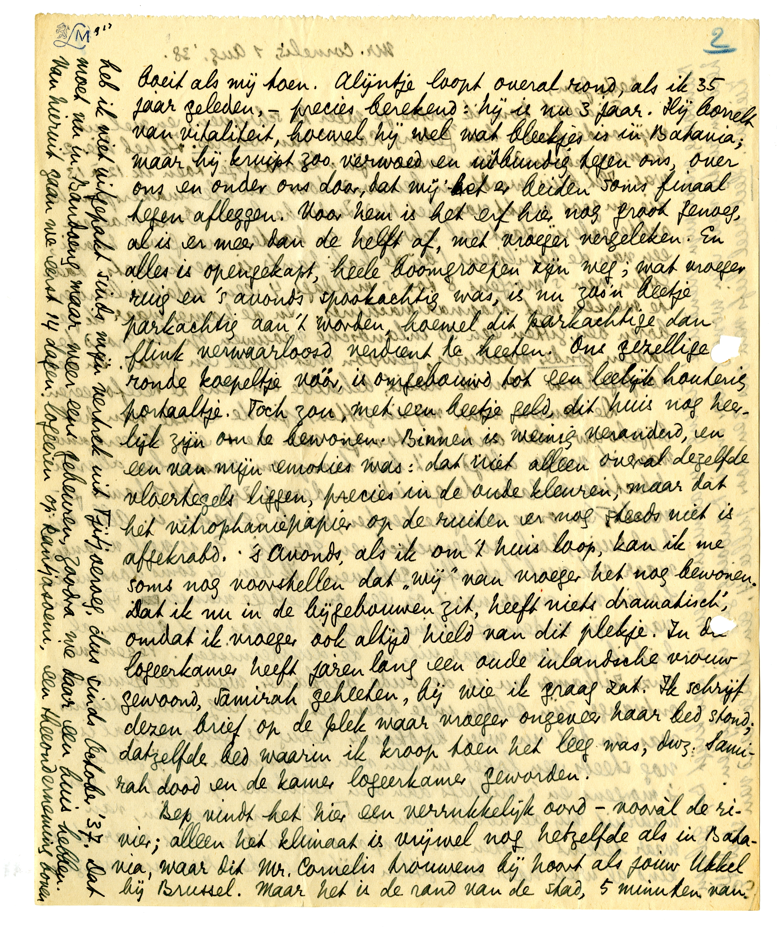 Bep vindt het hier een verrukkelijk oord - vooràl de rivier; alleen het klimaat is vrijwel nog hetzelfde als in Batavia, waar dit Mr. Cornelis trouwens bij hoort als jouw Ukkel bij Brussel. Maar het is de rand van de stad, 5 minuten van hier ben je de stad compleet uit en op den weg naar Buitenzorg.