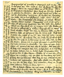 Hier in Meester blijven we nog maar 14 dagen. Je kunt me daarna altijd bereiken aan dit adres: p/a A.C. Nix, uitgever, Landraadweg 3, Bandoeng. Schrijf eens daarheen en vertel uitvoerig hoe jullie allen het maken. Is Griet gezond en fleurig? En Sophie? En Charles, wat doe die in zijn tegenwoordige levensphase? Is hij al aan den militairen dienst toe? Denk eens aan: het is 11 jaar geleden, sinds jij en ik elkaar het eerst zagen! - Wat lees je? Ik bijna niets dan historische dingen; en litteratuur alleen voor de krant. Een héél enkele maal maar lees ik een boek uitsluitend voor mijn eigen genoegen. Mijn echte goede boeken (Stendhal, Baudelaire en zoo) heb ik niet uitgepakt sinds mijn vertrek uit Tjitjoeroeg, dus sinds October '37. Dat moet nu in Bandoeng maar weer eens gebeuren, zoodra we daar een huis hebben. Van hieruit gaan we eerst 14 dagen logeeren op Ran-tjasoeni, een theeonderneming boven Bandoeng, waar mijn vriend Adé Tissing nu administrateur is. Zoo krijgt Bep gelegenheid om rustig naar een woning voor ons in Bandoeng zelf uit te kijken.