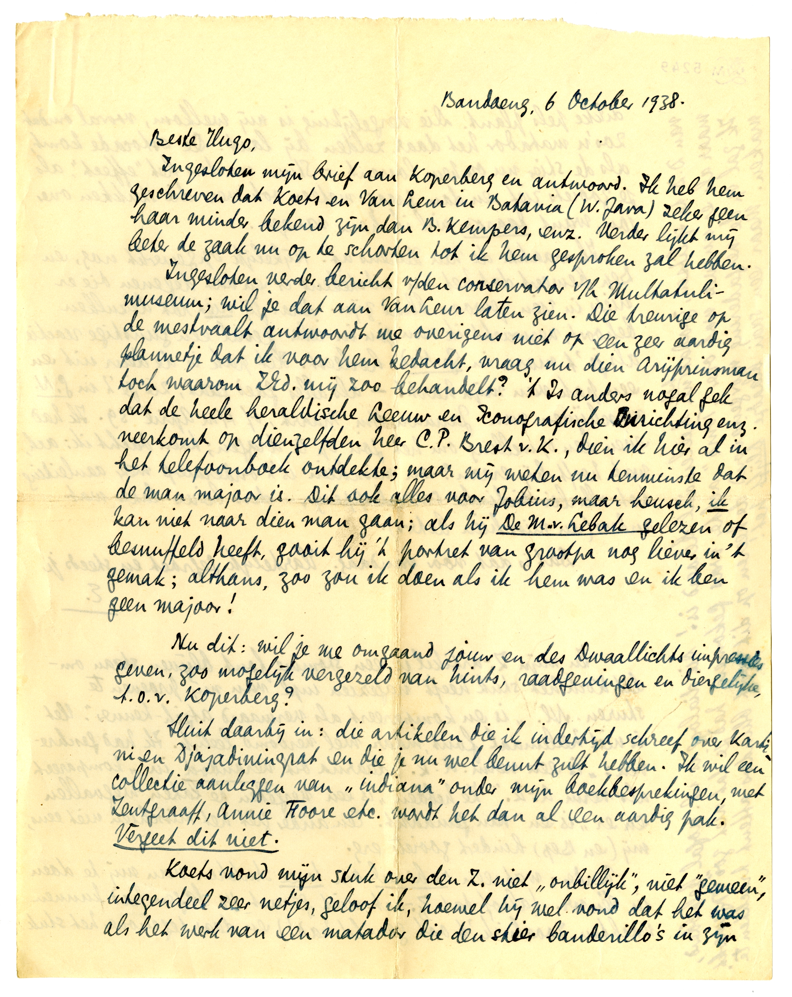 Sluit daarbij in; de artikelen die ik indertijd schreef over Kartini en Djajadiningrat en die je nu wel benut zult hebben. Ik wil een collectie aanleggen van ‘indiana’ onder mijn boekbesprekingen, met Zentgraaff, Annie Foore etc. wordt het dan al een aardig pak. Vergeet dit niet.