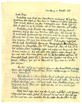 Ik maakte de Van Harens af. Rijkelijk opgewerkt nog, en Bep beweert, dat het nu uitstekend is en dat degenen die er niets in zien gewoon blind zijn. Daar jij niet tot dezulken behoort, verwacht ik van jou in ieder geval een gunstige reactie als je 't moois in Gr. Ned. herleest. Het pak is de deur uit en een pak van mijn hart! - als alles goed gaat, zie je 't in G.N. verschijnen van Januari t/m Maart, of t/m April '39. Ik had even een opwelling om het jou op te dragen; toen dacht ik: ach, wat heeft hij eraan? en misschien is 't onderwerp weer aanleiding tot allerlei indische smeerlapperij, - dus liever later wat anders (en misschien beters).5600