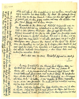 Ingesloten verder bericht v/den conservator v/h Multatuli-museum; wil je dat aan Van Leur laten zien? Die treurige op de mestvaalt antwoordt me overigens niet op een zeer aardig plannetje dat ik voor hem bedacht, vraag nu dien Arijprinsman5597 toch waarom ZEd. mij zoo behandelt? 't Is anders nogal gek dat de heele heraldische Leeuw en Iconografische Inrichting enz. neerkomt op dienzelfden heer C.P. Brest v.K.,5598 dien ik hier al in het telefoonboek ontdekte; maar wij weten nu tenminste dat de man majoor is. Dit ook alles voor Jobius, maar heusch, ik kan niet naar dien man gaan; als hij De M. v. Lebak gelezen of besnuffeld heeft, gooit hij 't portret van grootpa nog liever in 't gemak; althans zoo zou ik doen als ik hem was en ik ben geen majoor!