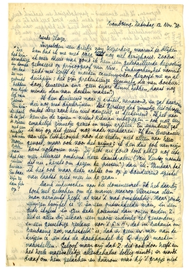 Ik ben benieuwd naar je artikel, vanavond, en zal daarover hier nog wat bijschrijven. Dat Versteeg dat zinnetje liet schrappen omdat deze zaak hen niet aanging, is teekenend. Ik heb voor hem en de zijnen - vriend Ritman inbegrepen - ook nog een smakelijk zinnetje gezet in mijn artikel. En eventueel zal ik mij op dit punt nog nader verklaren. Ik ben leverancier van een litt. kroniek voor die lieden, niet alleen voor hun gevoel, maar ook voor het mijne; ik ben dus ook van mijn kant volkomen vrij. Jij hebt au fond toch altijd nog iets meer illuzies omtrent deze lamstralen (Van Heutsz noemde dit nu ‘kerels om tegen te pissen’) dan ik. Vandaar dat ik het ook maar beter achtte om op je boudeerend epistel van laatst niet meer in te gaan.