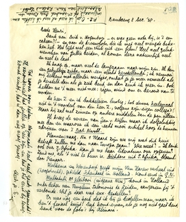 Plannen: vaag. Na 1 Maart zijn we vrij wat dit huis betreft. Zullen we dan naar Europa gaan? Wie weet? - Ik denk ook over Z. Afrika. Kan je me daar literatuur over opgeven? Zend me, als 't niet te duur is, Dichters uit S. Afrika, bloeml. door Pienaar.