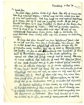 Verder weet je van Jan Gr. natuurlijk wat me in hoofdzaak overkomen is. Ik verliet Batavia voor dit oord, omdat ik 't daar aflegde tegen de hitte, en nog geen maand was ik hier of ik liep die longontsteking op. Denk je eens in: al jaren heb ik bij je aangedrongen, met Jan, Sander en iedereen, dat je je verzen verzameld zou uitgeven, en nu dit gebeurt... was ik haast de eenige geweest die 't niet meer gezien had! Ik begin nu te begrijpen, waarom ik toch maar gespaard ben.