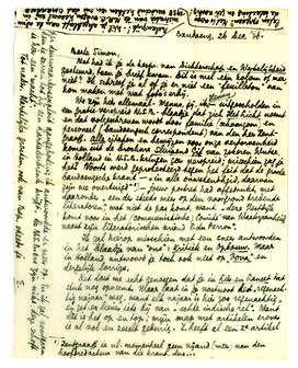 Het doet me echt genoegen dat je in Lier en Lancet dat stuk5774 nog opneemt. Maar laat in je voetnoot het ‘regenachtig najaar’ weg, want elk najaar is hier zoo regenachtig, en zet er liever iets bij van ‘echte indische rel’. Want dàt is het op en top; mijn map met artikelen erover is al vol en zwelt gedurig. Z. heeft al een 2e artikel per deurwaardersexploit aangeboden; ik antwoordde er weer op. En ik zal voortgaan hem te sarren tot hij een hartaderbreuk krijgt. De N.S.B.-ers zijn niks, deze schoft is hier een ‘macht’.