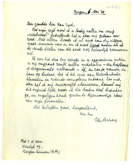Tot mijn spijt moet ik u lastig vallen om eenig ‘uitsluitsel’ betreffende het u door mij gedaan verzoek. Niet alleen hoorde ik nl. niets van den uitgever, maar evenmin van u, en ik moet haast maken als ik de eerste deelen van die serie nog behoorlijk recenseeren wil.