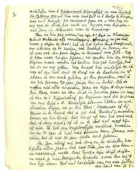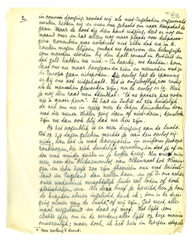 Nu, Jan, schrijf mij ook eens, om te vertellen hoe 't jullie allen gaat - ook wat Atie, Jan en Kees doen - en waaraan je werkt. Laat Europa zijn strijd strijden en maak je niet, daarginds, beroerder erover dan wij 't ons hier doen. Heel veel hartelijks van ons voor jullie, een hand van je